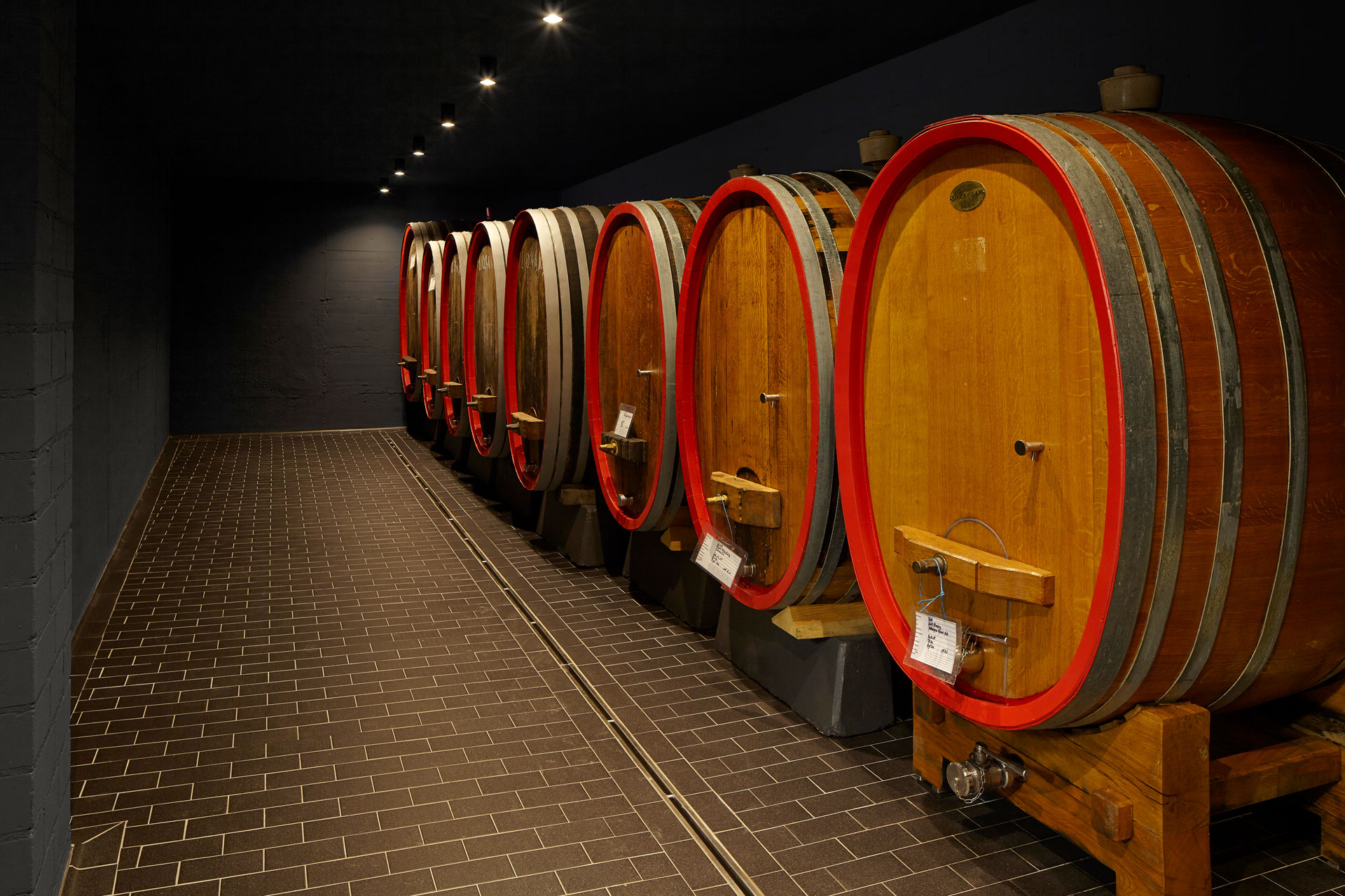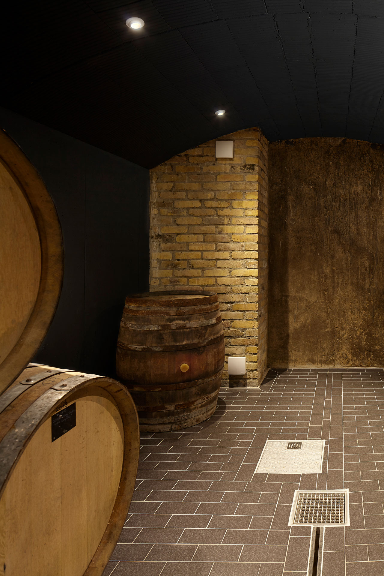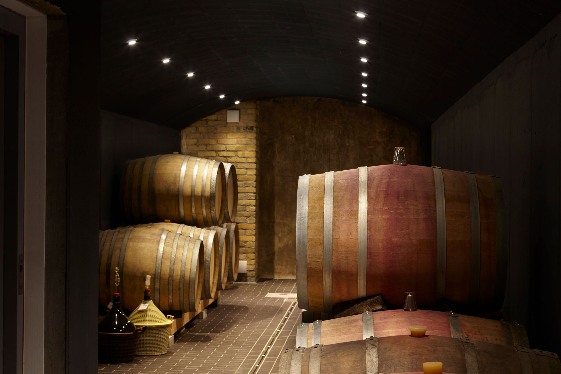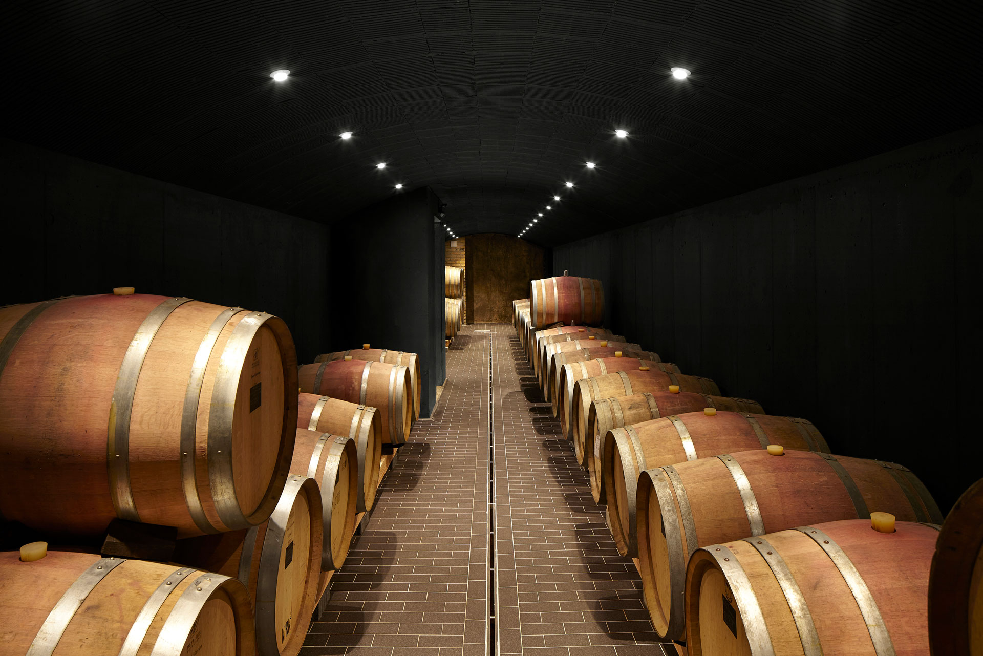 Das Fasslager steht dadurch edel inszeniert im Mittelpunkt der Betrachtung.