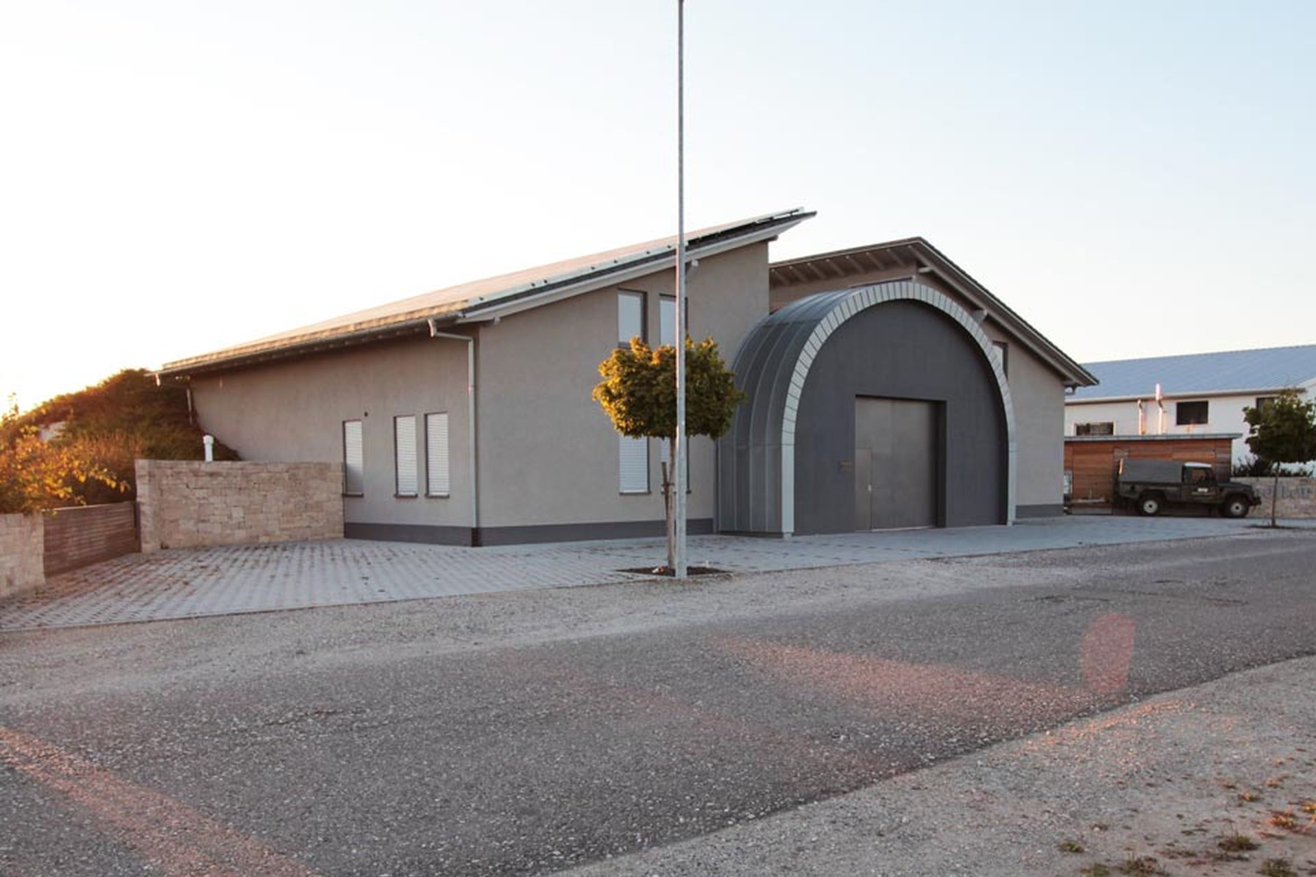 Das Gewölbe erzeugt zwischen den Pultdächern im wahren Sinne einen architektonischen Spannungsbogen.