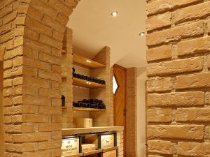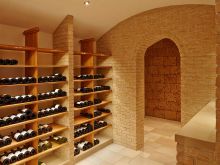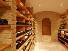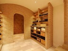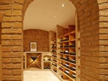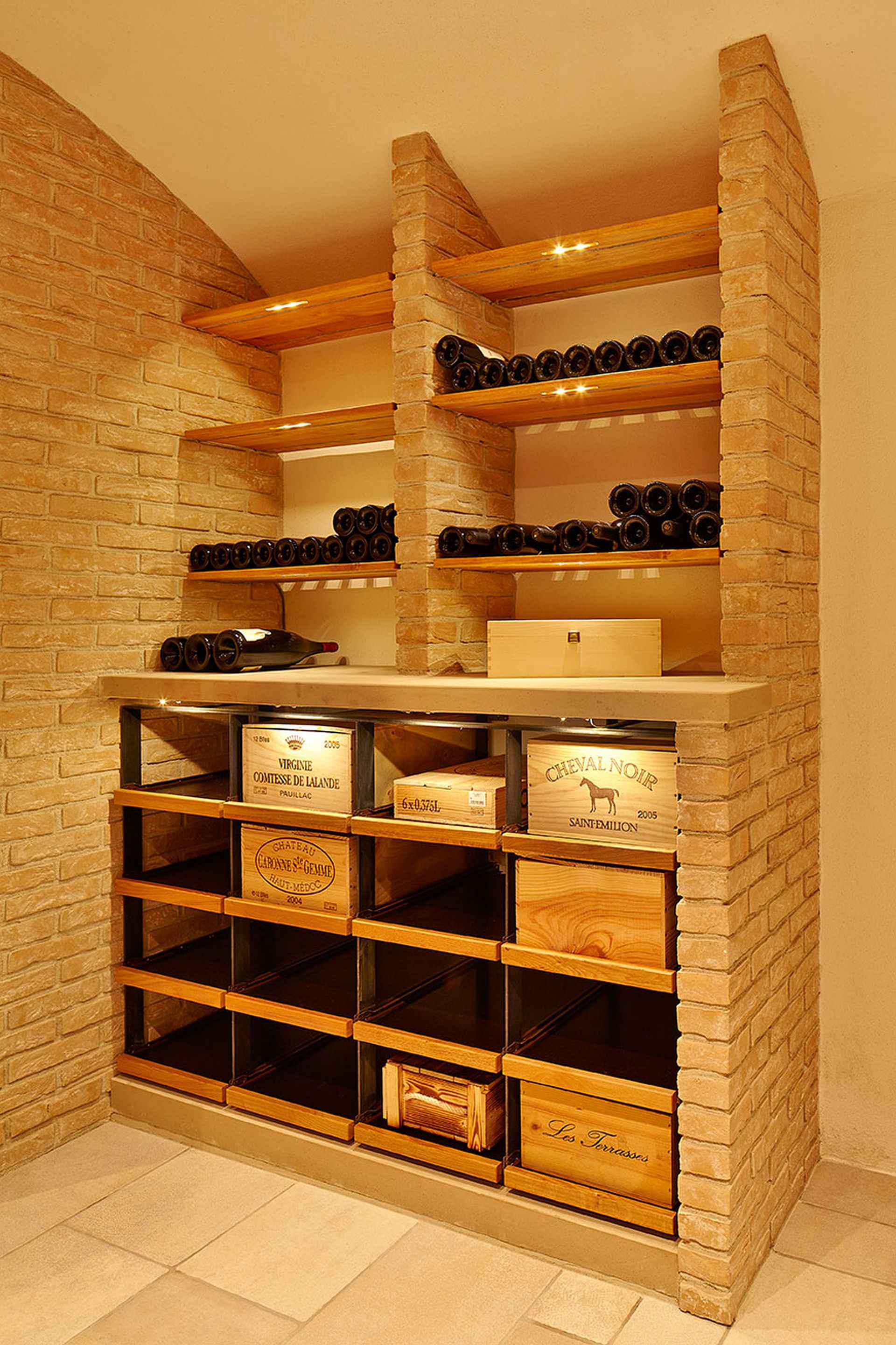 Im Gewölbe integrierte Downlights und die indirekte Fachbeleuchtung an den Weinregalen stimmt den Weinkeller angenehm hell und freundlich. Die Naturbaustoffe Antikziegel Flavum und Natursteinarten Tuffstein und Marmor Sinai harmonieren perfekt. Das kalkgeputzte Gewölbe rundet mit optisch spielerischer Leichtigkeit ab und ist als massives Ziegelgewölbe doch statisch hoch belastbar. Funktionell gesehen ist das ZiegelGewölbe für den Weinkeller erste Wahl. Warum das so ist, erklären wir hier.