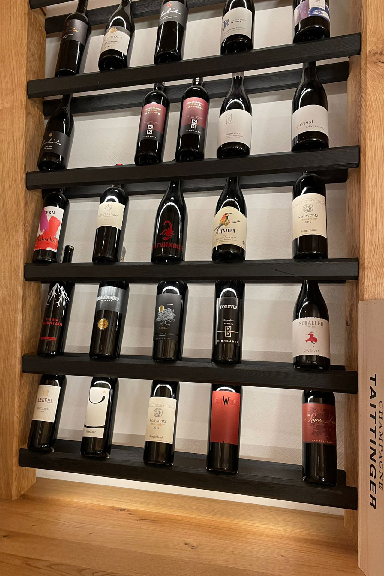 - Weinregale gemauert und geschreinert für Kistenlagerung, Flaschenlagerung und Großflaschenlagerung inkl. Beleuchtung