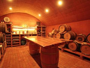 Für den Rohbau lieferten wir Kappengewölbe, die nach Einbau einen Anstrich mit ziegelroter Lasur erhielten. Der anschließende Innenausbau mit der handgemauerten Präsentationsfläche macht den Barriquekeller gleichzeitig zum gerne genutzten Degustationsraum für Tastings. Über die Lichtsteuerung lässt sich das Barriquegewölbe dazu leicht in stimmungsvolles Licht tauchen.